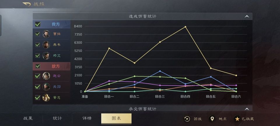 无论曹操和邓艾,在如此的配置之下都能给典韦提供奶量。没有了后顾之忧的典韦,要做的只有两件事,把敌人嘲讽过来,再反击暴打干掉。看着这一骑绝尘的伤害统计,碰瓷流打法确实舒服。