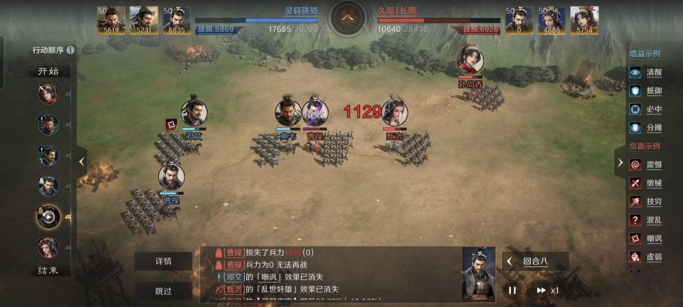 曹操战法:乱世奸雄+清风驱疾+蓄势待发。韬略库:先勇善本+武烈善本+孟德新书下卷(专属)。重盾兵特性不屈,专精点亮屹然不动。邓艾是通过百战不殆给典韦叠加武力,曹操则是通过蓄势待发给典韦叠加伤害百分比。他们的治疗战法,除了能够提供奶量,还可以驱散负面状态。