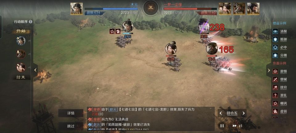 一般人看到是这样的局面,估计连抵抗都不想了。然而赵云却先把庞德和貂蝉击溃,再跟话本版的董卓连续对耗了五局。一口气吃不下的胖子,他分成了好多口慢慢啃,无论是战法、装备、坐骑、韬略还是兵种都值得咱好好研究啊!