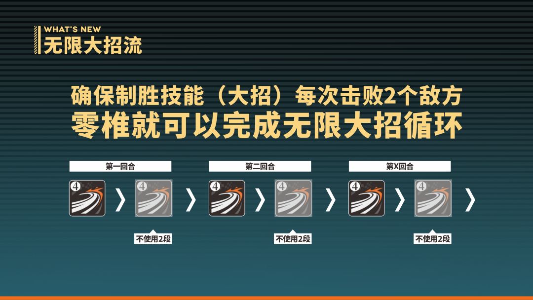 3椎:解除击败限制,命中两个单位即可刷新。制胜技能对群伤害大幅度提升,对BOSS直接触发全部效果(伤害直接提高50%+防御降低30%+可直接刷新1次制胜技能)推荐抽取