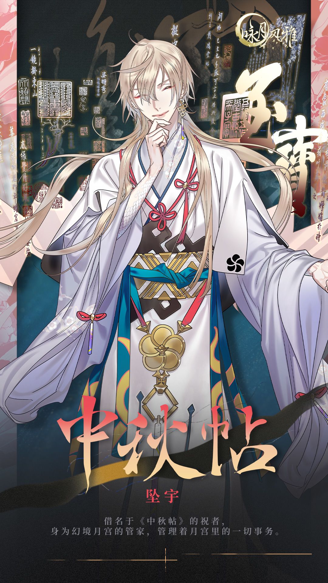 ★角色介绍:借名于《中秋帖》的祝者,身为幻境月宫的管家,管理着月宫里的一切事务。喜欢收藏古玩、赏月、饮甜酿,性格温和,无论何时都会浅笑着回应,但还请小心他隐藏在笑意下的试探和危机。