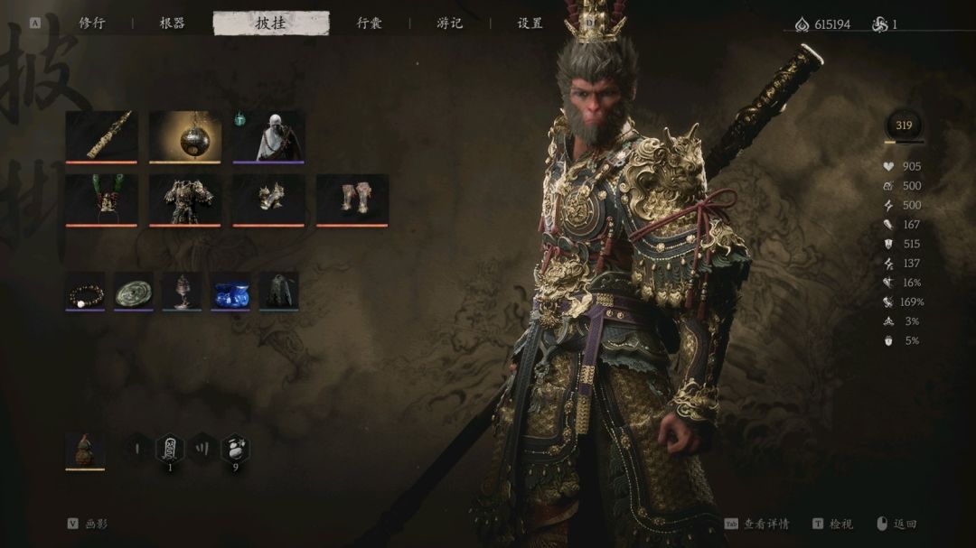 这一套只要打出大圣形态,喝酒之后葫芦空的时候就是常驻75增伤,容错率非常高,在boss发癫期且没有大圣形态时可以开定风珠补减伤,这套不像阴阳法衣,还是可以暴击的,有伤害又足够帅,安身法也能更快让你叠棍势进入五层棍势解锁大圣形态