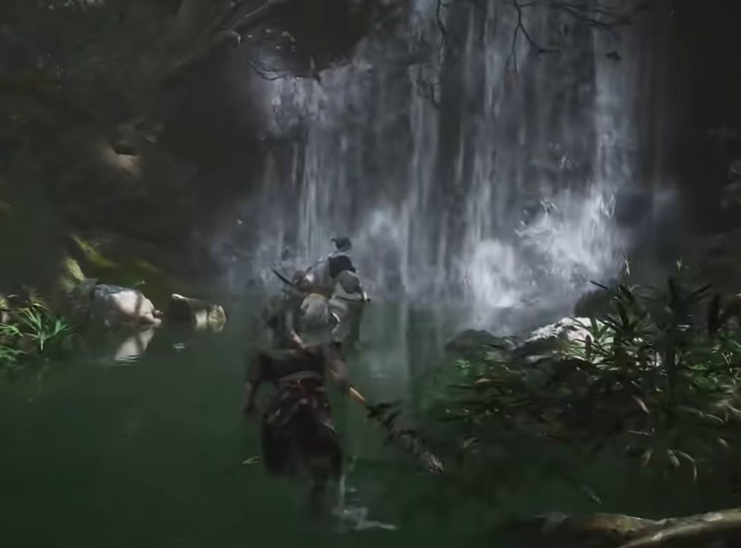 来到瀑布前,互动,开启副本:赤髯龙