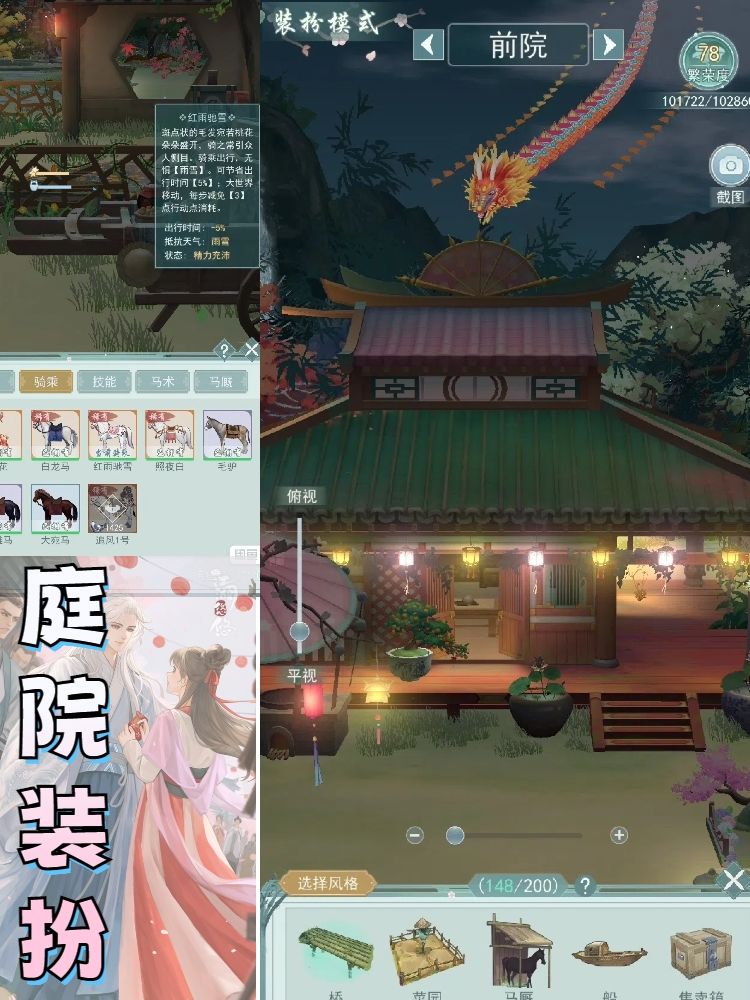 游戏玩法做了简化的同时又不缺少内容,种植炼丹酿酒工艺烹饪外出游历该有的全都有,玩家所需要做的也不过是收拾庭院打包食物,游戏角色就会自动出行过段时间回来带明信片给你,玩家视角下的游戏角色也不死板,游历回来后情绪的起伏变化也有直观的表现,不仅仅只是游戏中的一个提线木偶,像是你未曾去过的江湖有人替你去走与你分享