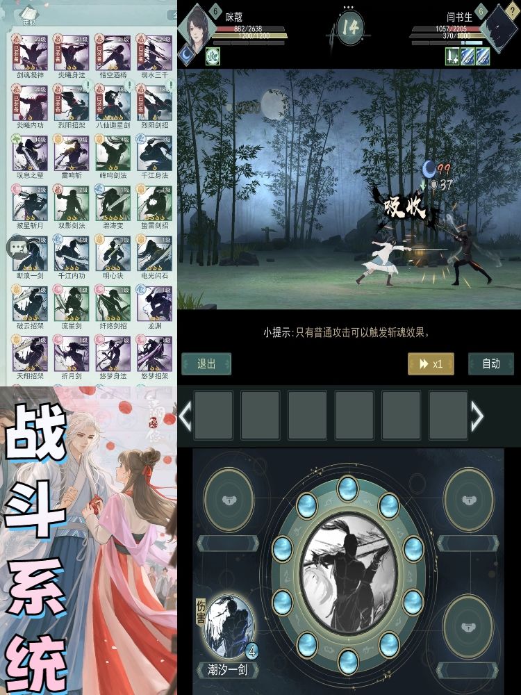 想提升角色的属性能力当然少不了各种装备和功法,除了在任务或者侠道获取总归绕不过氪金,如果追求高战力的话并不便宜,不过连PVP都没有的放置游戏不强求战力就是了,各类功法除了棋局抽卡也可以外出游历拓碑拍卖等细水长流,不能说零氪也能秒天秒地但起码玩着是不难受的