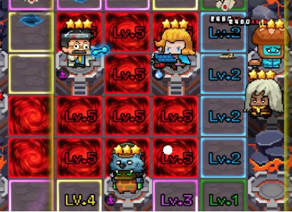 5、英雄在战斗内可以随意拖动至其他塔座,要利用好这点,去叠出更高级的地块消灭敌人吧。