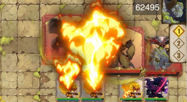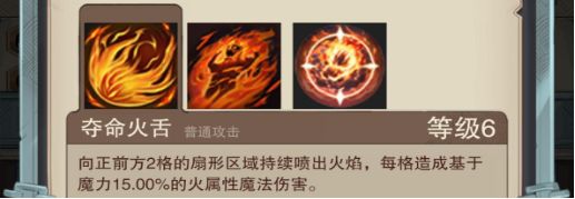 首推星火精灵的原因,主要是因为其一技能“向正前方2格的扇形区域持续喷出火焰,每格造成基于魔力15%的火属性魔法伤害”。注意,是“每格”,大体格的BOSS所占格子多,星火精灵可以造成多段「奥术激荡」伤害,打BOSS特别疼。若是配置「远攻」,效果更佳,喷出火焰占的格子更多,参考下图:
