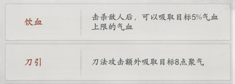 饮血:击杀敌人后,可以吸取目标5%气血上限的气血