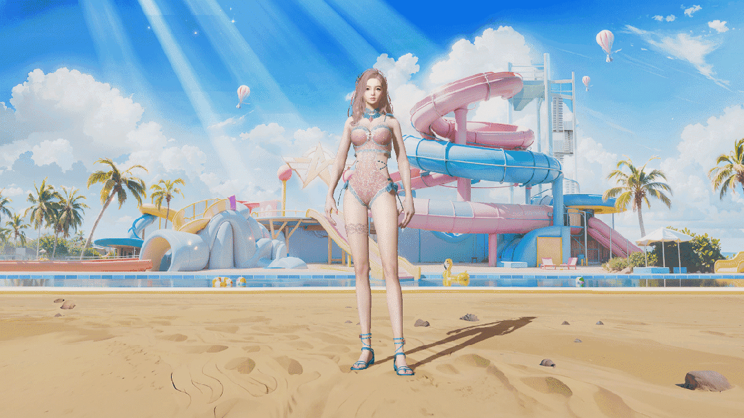领口的镂空设计和胯部两侧的蝴蝶结装饰充满小心机,绑带凉鞋也与上身泳装和谐统一。原版采用蓝粉撞色搭配,如果荒友们有自己的想法,可以在琉光工坊进行染色改造,体验DIY的快乐~