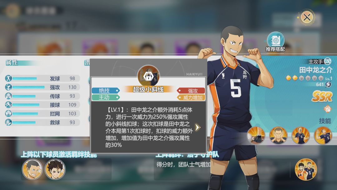 菅原孝支的技能也能削弱体力消耗,同时还能在传球后提升强攻角色的强度。