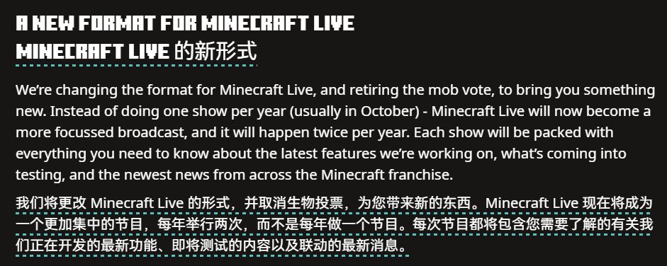 喜讯:Mojang宣布Minecraft Live取消生物投票,且改为一年两次!