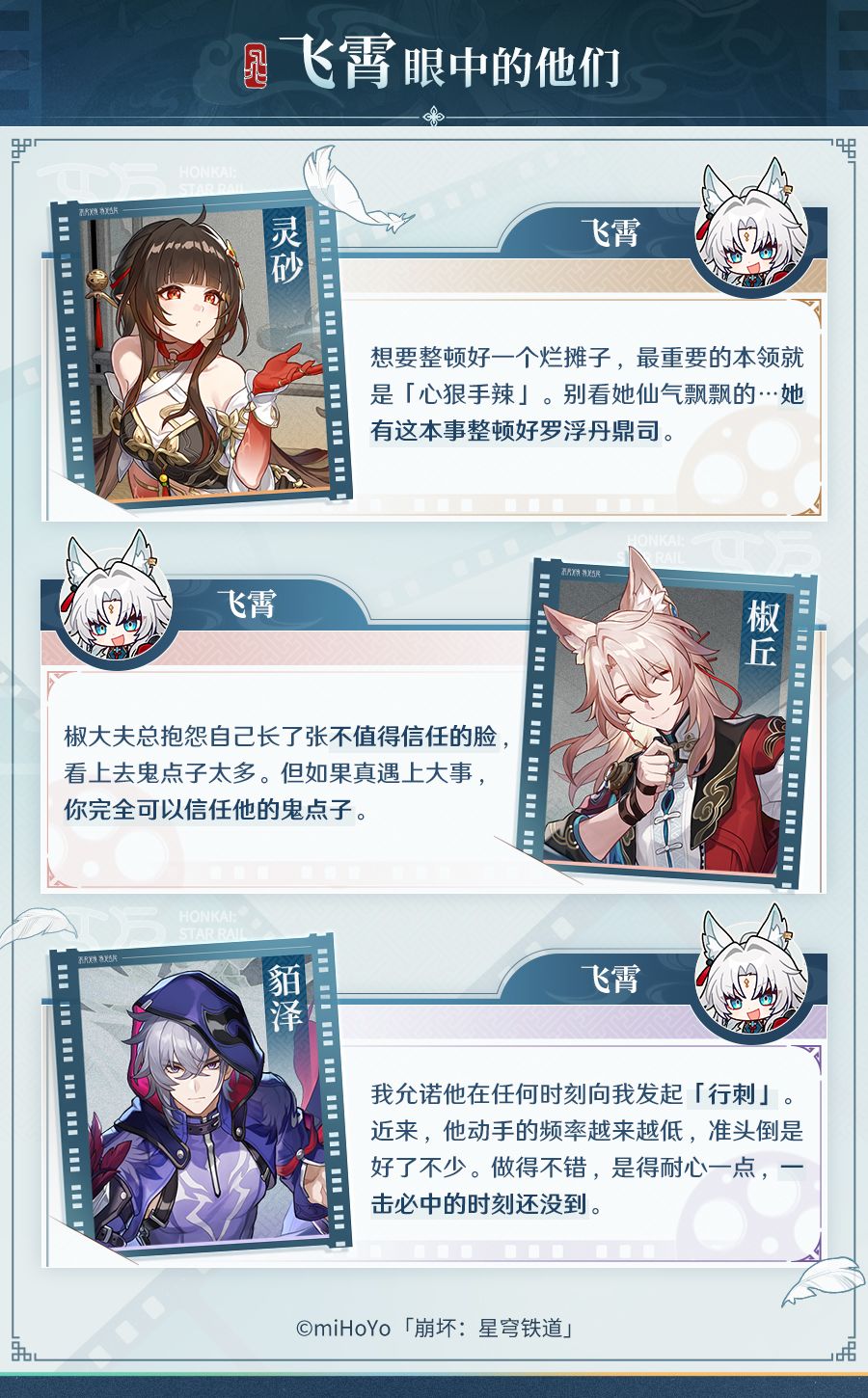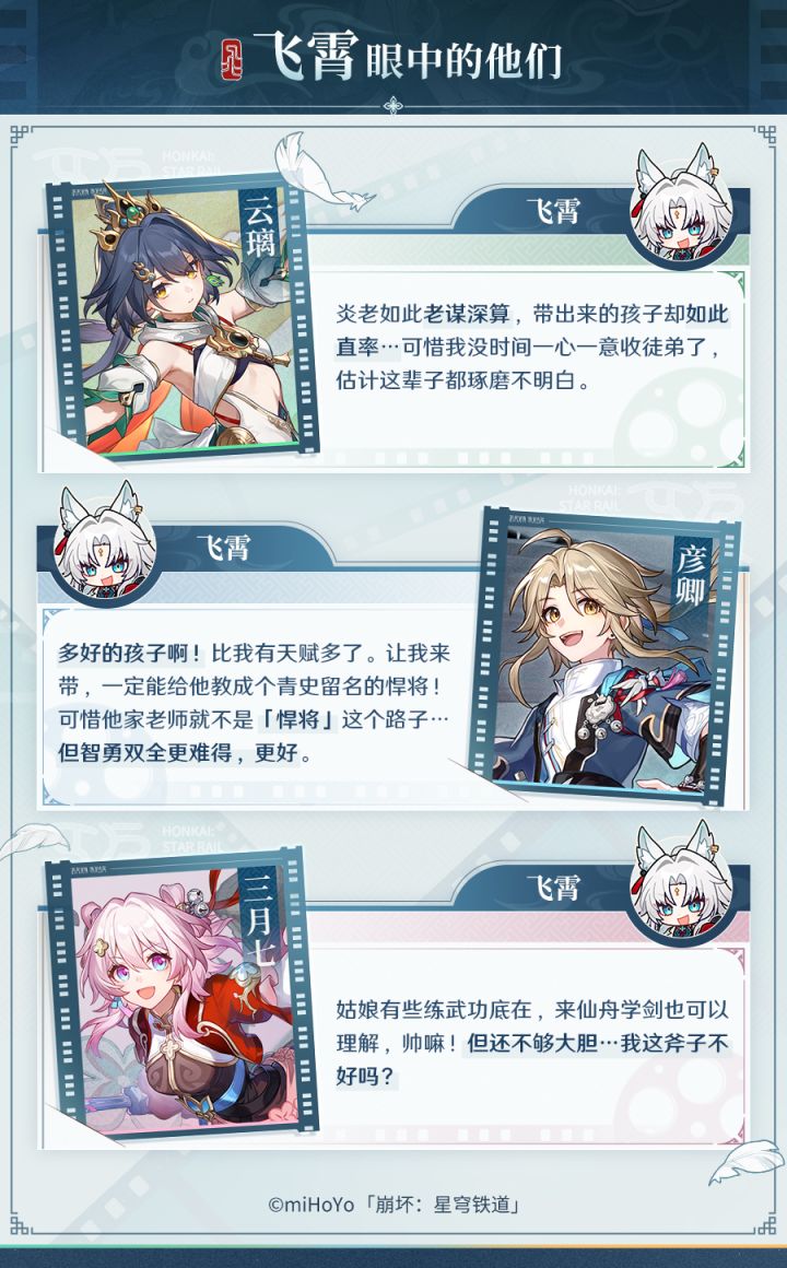 率直洒脱的飞霄将军深受军民爱戴,她怎样看待仙舟众人?伙伴们对飞霄又有哪些印象?和帕姆一起来看看帕~