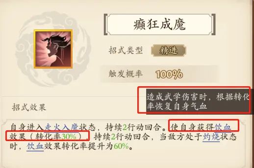 例如20%的转化率的饮血效果,相当于此武学伤害的20%转化为目标所恢复的生命值。