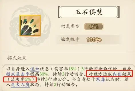 比如对方受到效果10%流失率内伤,效果生效时,就会流失对方10%内力上限的内力。