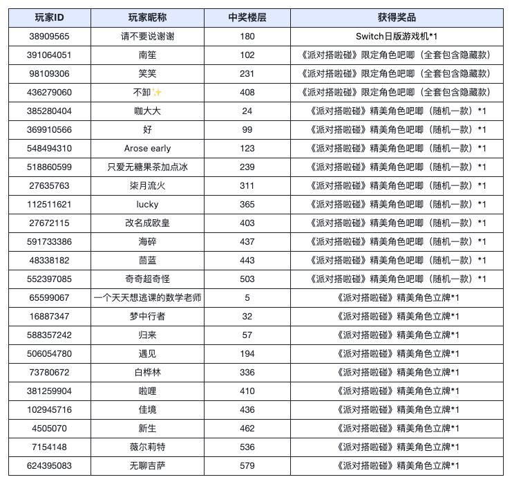 三等奖:《派对搭啦碰》精美角色吧唧(随机一款)*1(共10位)