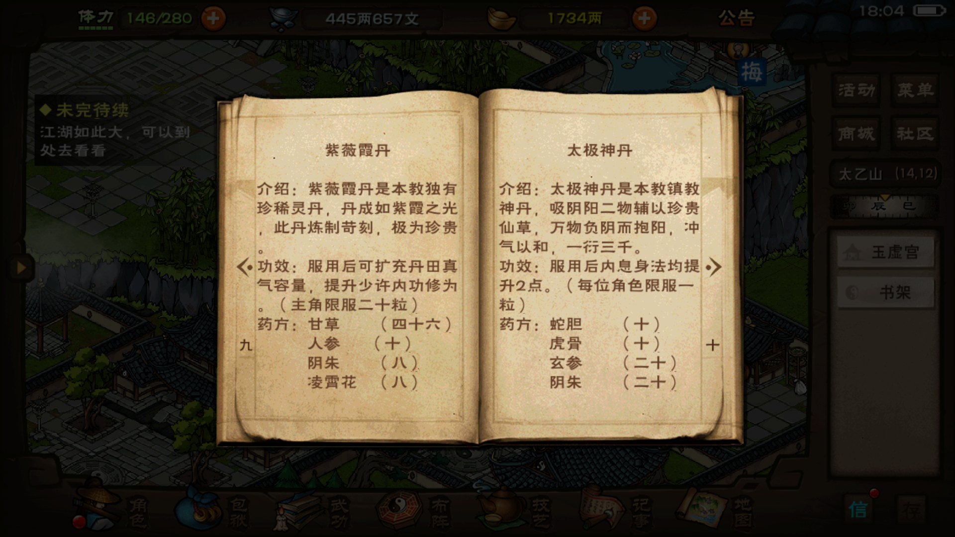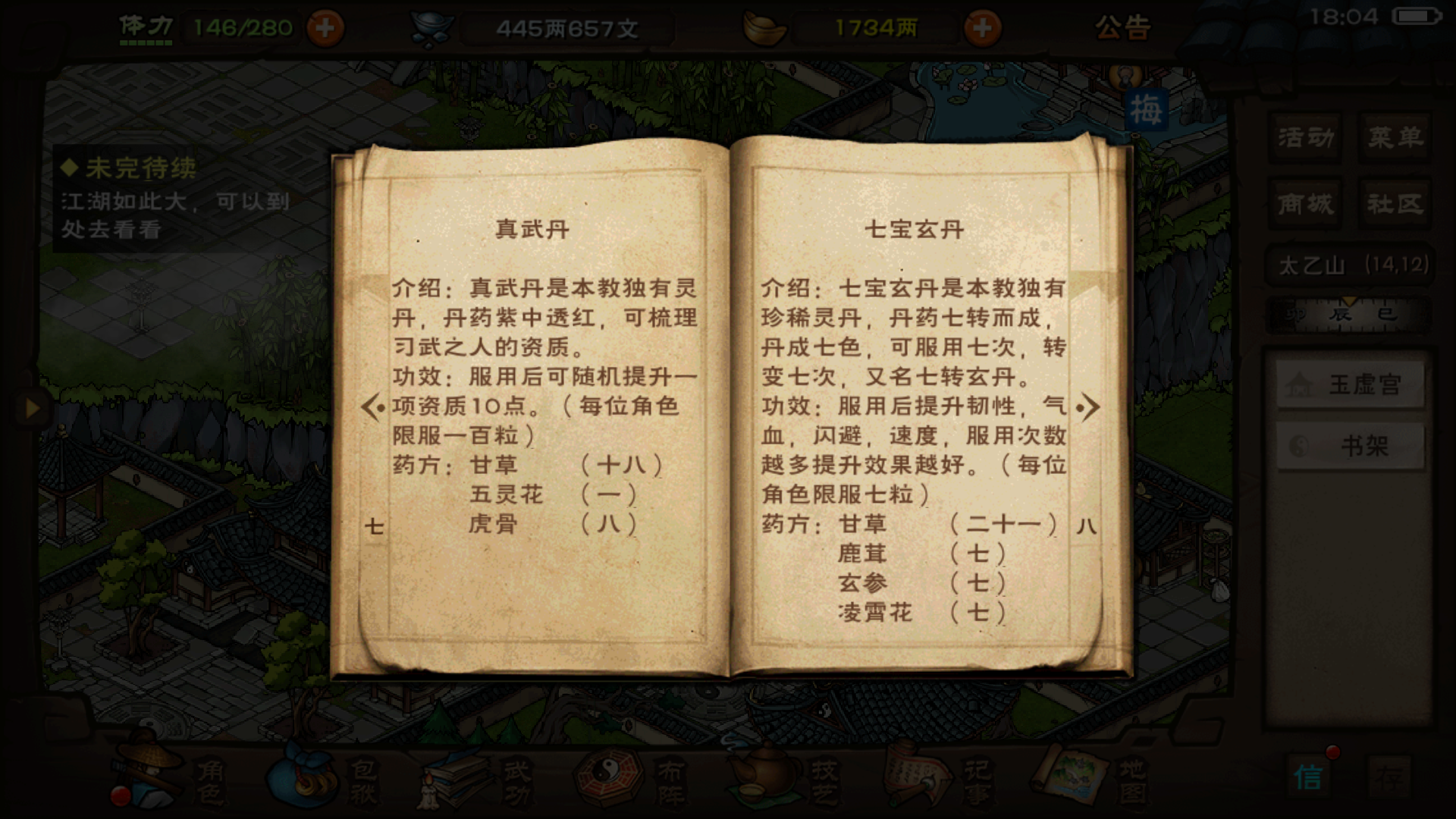 目标是先天功和阵法。顺便练些丹,想知道太乙还有什么好东东