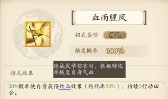 【饮血】:造成武学伤害时,根据吸血转化率恢复自身气血
