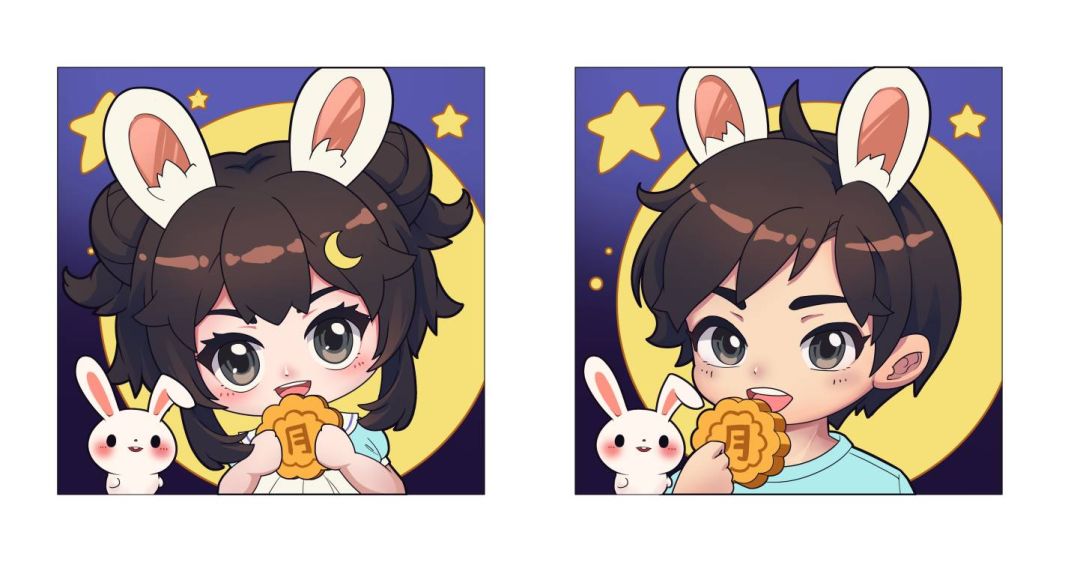 饼儿圆与月儿如,变身小兔子,一起和月兔恰个月饼吧~