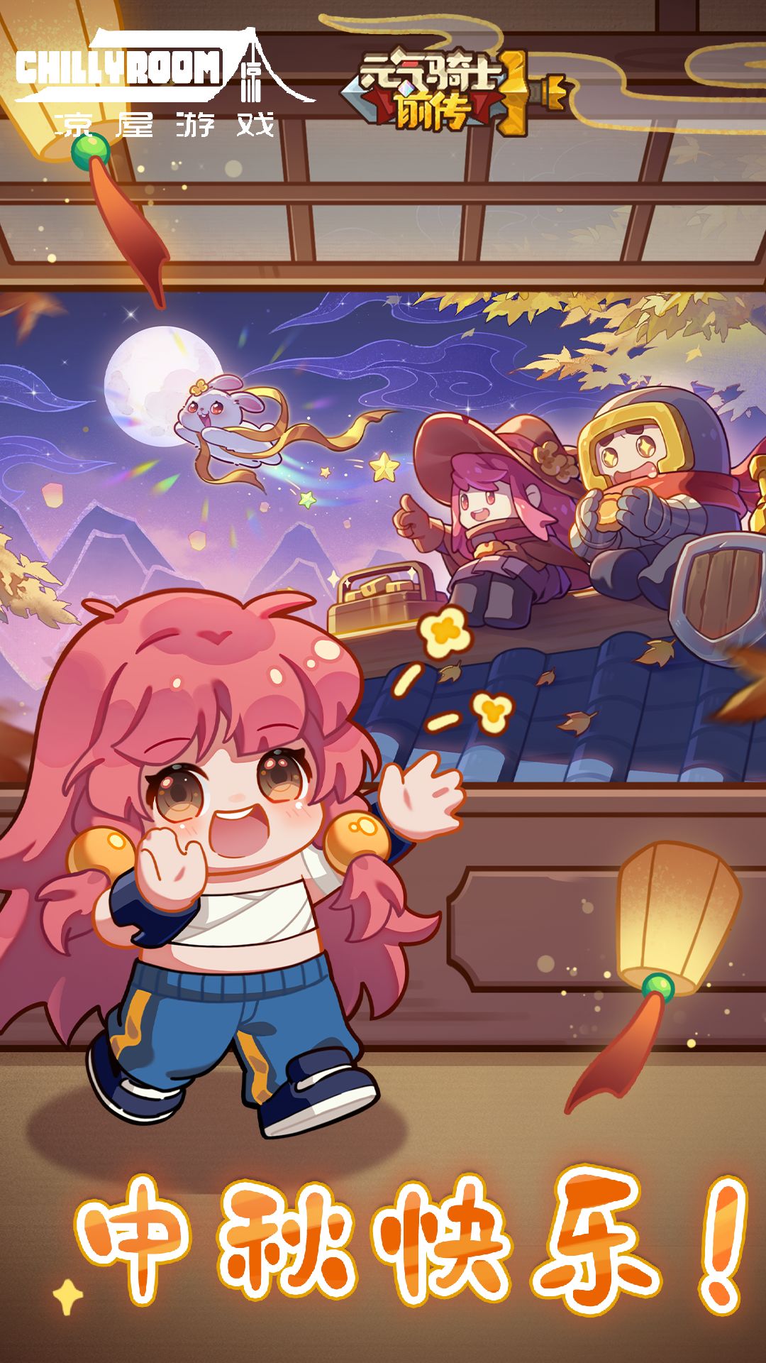 小骑士们中秋快乐呀!又逢佳节,亚伦和梅早早爬上屋顶看月亮,权虎鹰向你打招呼:“走,一起去赏月!”