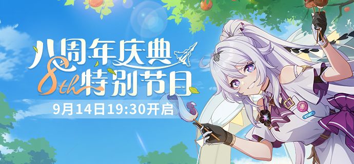 舰长好!9月14日本周六晚19:30,《崩坏3》八周年庆典特别节目将在爱酱的直播间举行,这次又会有什么精彩内容呢?请看爱酱带来的机密情报——