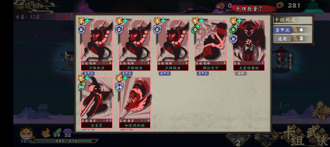 豪侠叠甲 英雄要求极低 核心卡洪七公可以抽够十个娃娃之后去娃娃商店直接买 另外两个有紫色灭绝师太最好 没有的话带俩蓝色武学有护甲的卡也可以