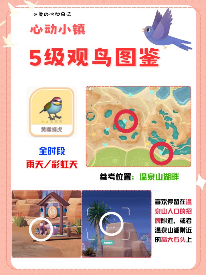 给大家分享一些鸟类5级图鉴的常见位置(4级以下的鸟类可以看我之前发的帖子):