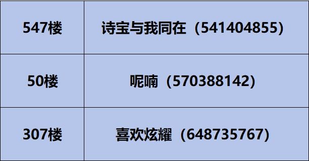 注:部分中奖的楼层未满足活动参与要求,中奖资格将顺延至一下层满足活动要求的楼层。