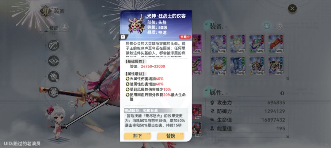 一技能简评①终极技能,冷却22秒攻击力*20000%光属性可暴击伤害,给主战附加8秒“初始之光”增益:每1%光属性伤害加成,增加0.02%技能伤害总加成。誓约1增益:每次释放叠加1层“珖耀”,技...