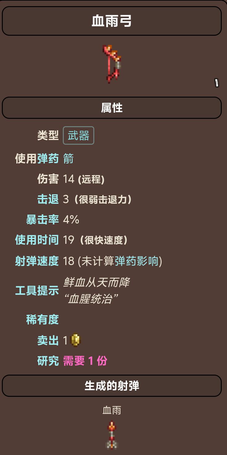 大前期过渡武器,仙人掌剑上位,回血可有可无,伤害高但是慢,对群怪压制力偏弱,打完克眼就可以换魔矿剑(猩红剑)了