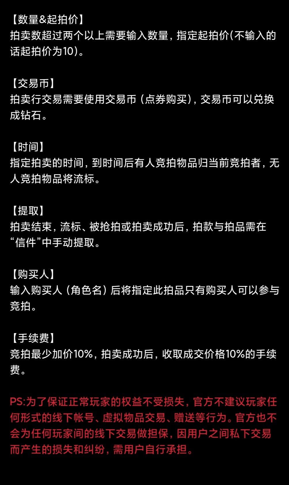 固定功能-拍卖行-游戏好友之间互相交易竞拍的地方