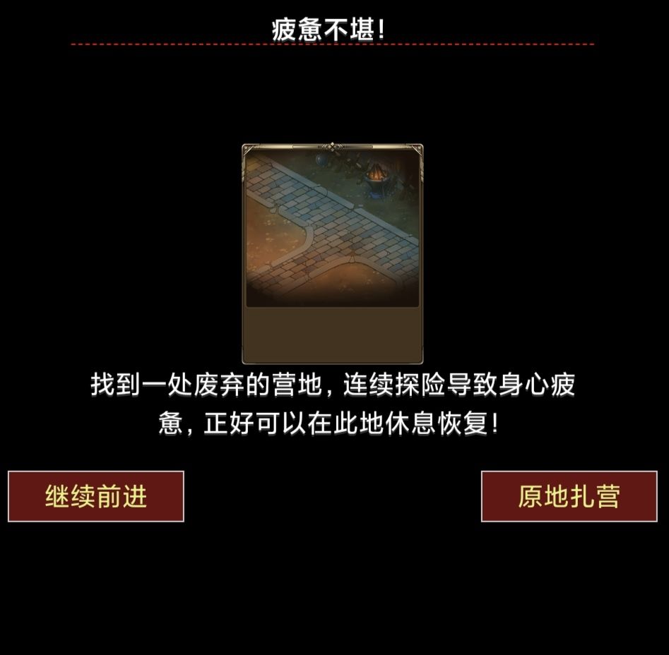 -原地扎营: 概率获得50点体力or无奖励(体力-10)