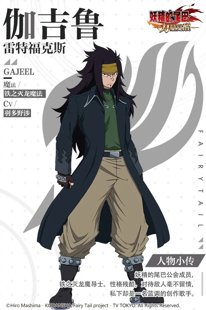 伽吉鲁·雷特福克斯,原是魔导士公会“幽鬼支配者”王牌成员之一,是一名铁之灭龙魔导士。在幽鬼公会的伽吉鲁,性格残忍冷酷又高傲,其他公会成员都很畏惧他。后来在马卡洛夫的劝说下,加入“妖精的尾巴”公会,加入公会后的伽吉鲁渐渐萌生对伙伴的思念之情,开始懂得珍惜同伴,现在公会和同伴对他来说都很重要。