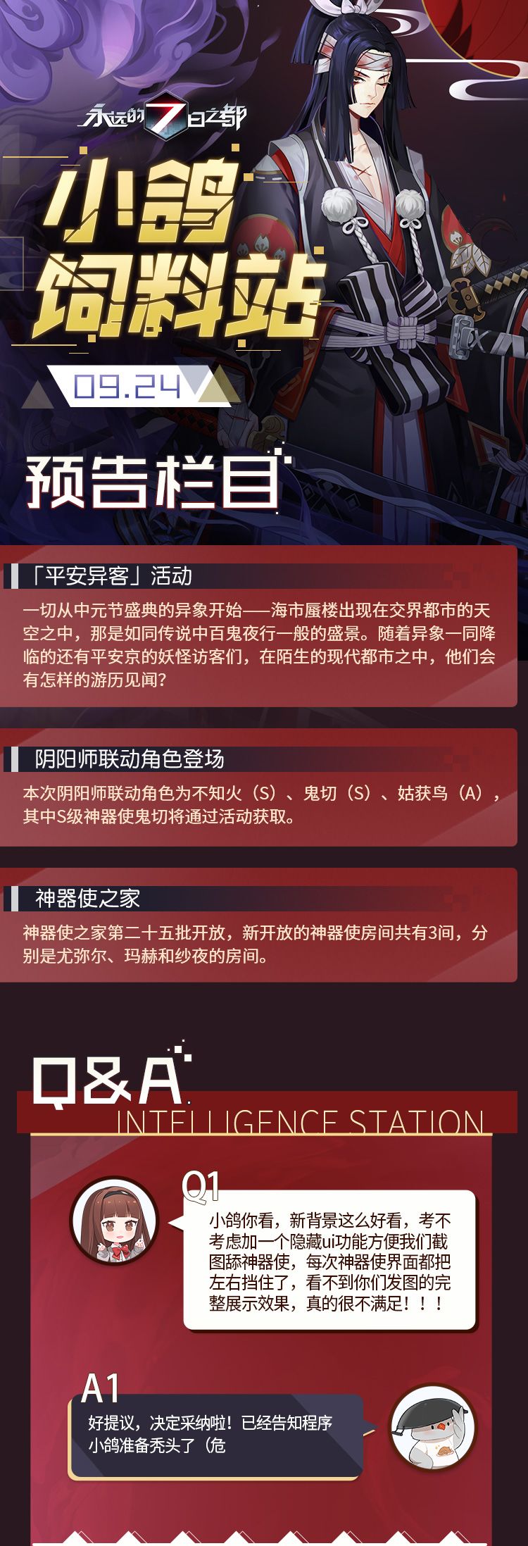 小鸽饲料站 | 阴阳师联动最新情报公开,鬼切活动免费获取