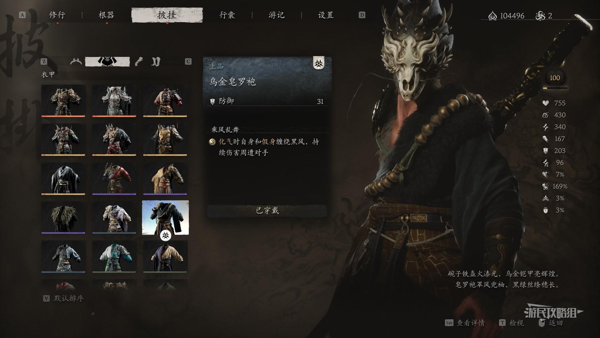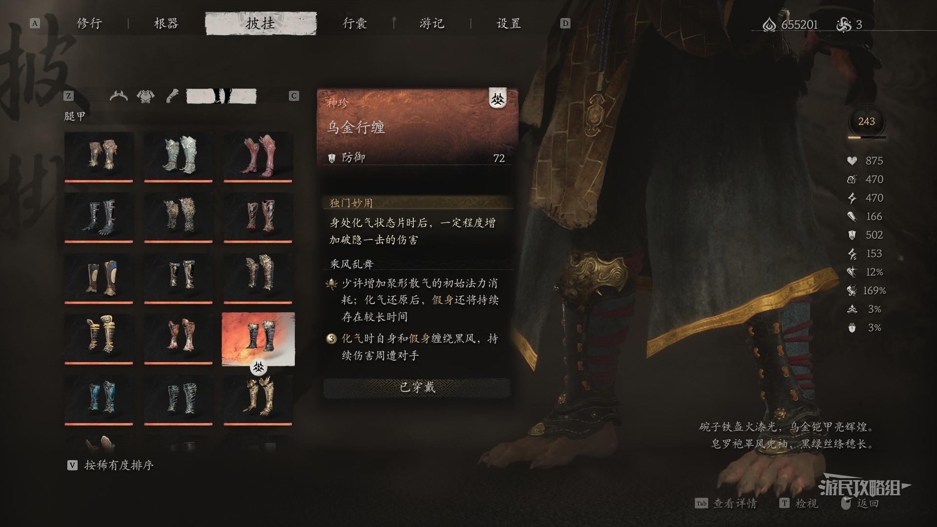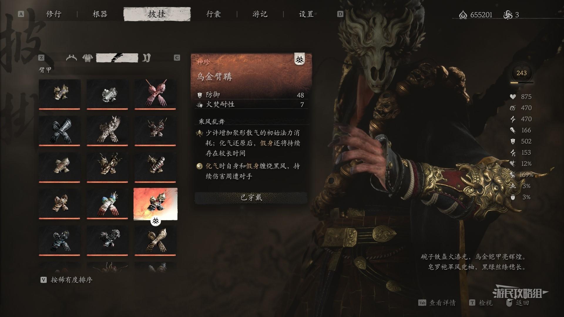 《黑神话悟空》套装属性及外观图鉴 防具套装满级属性_上品-乌金套装
