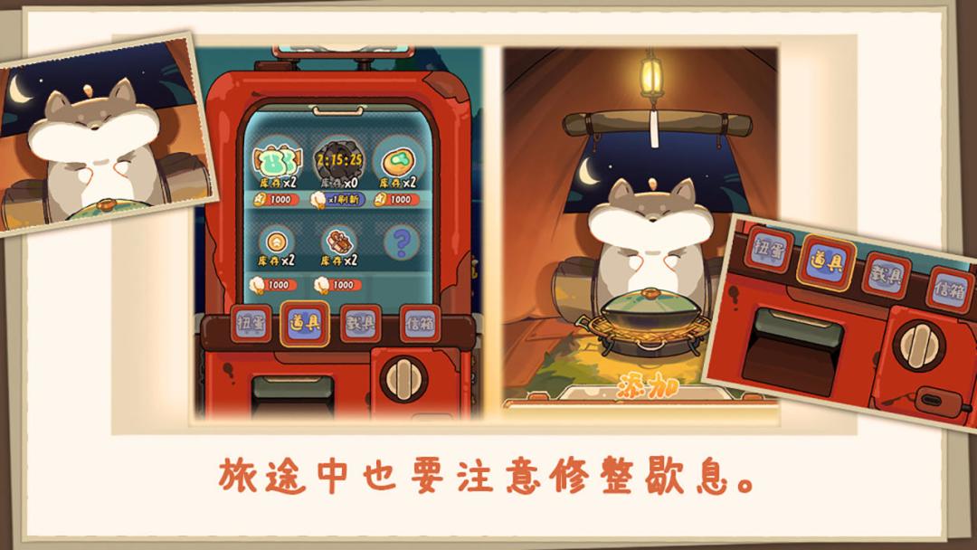✨和小鼠一起出去旅行,在发现各类丰富露营地的同时,也会在旅行中认识很多小伙伴,收集各类道具,素材,食材,做饭等。