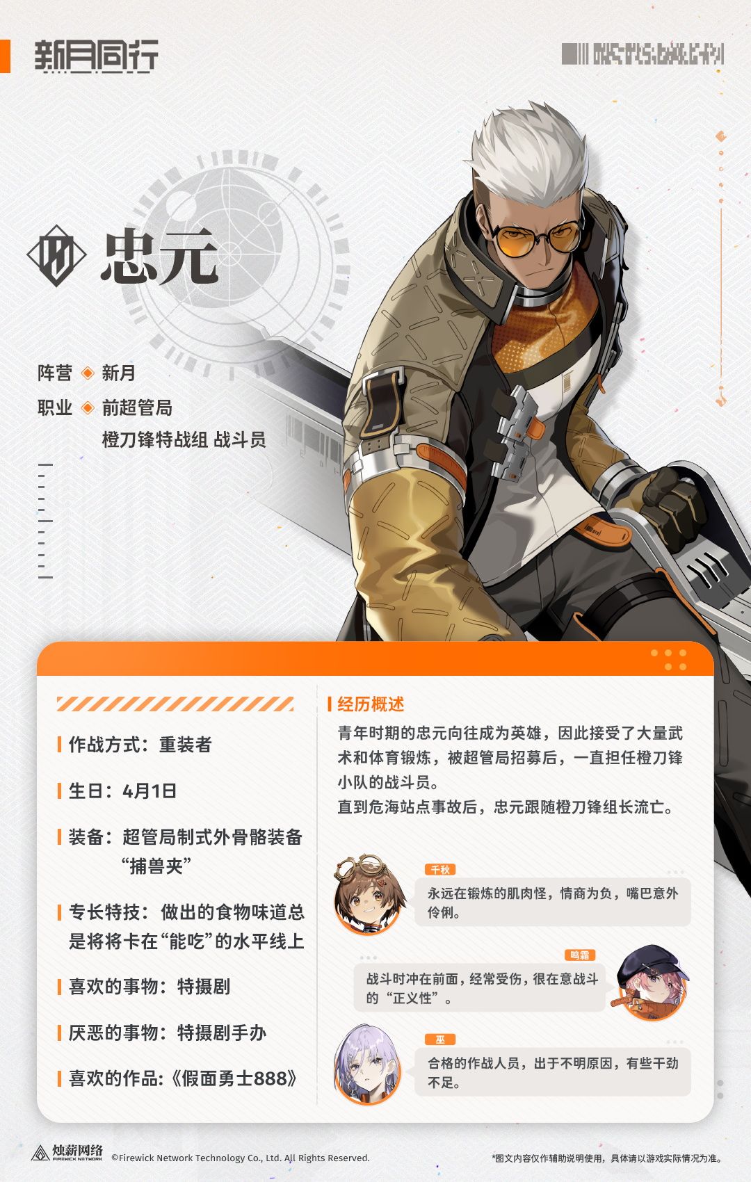 直到危海站点事故后,忠元跟随橙刀锋组长流亡。