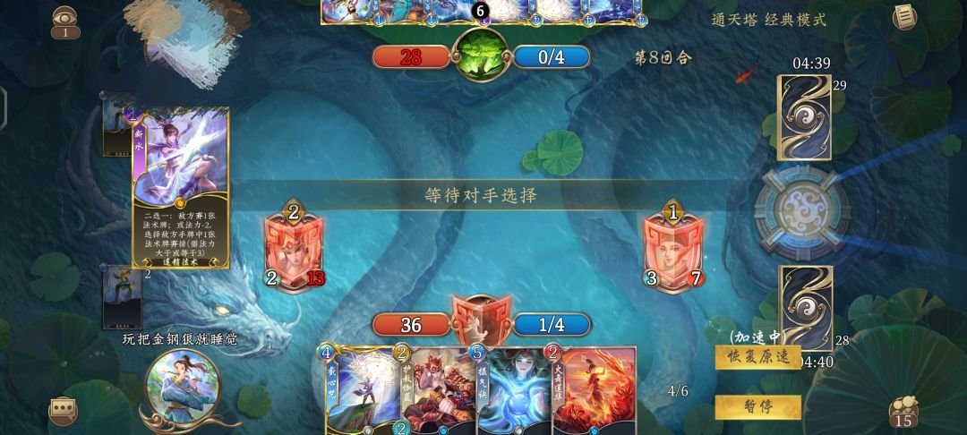 断水选项二的描述是法力减二,选择对手一张法术弃掉,需要法力大于等于三。但实际上打出断水选择选项二时,要弃掉对面法术才会扣除这两点法力。