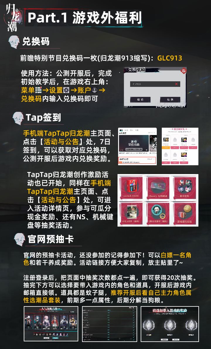 今天归龙潮预下载开启!汇总一下官方的网页活动、Tap的福利活以及公测福利,大家可不要忘记参加!13号公测可以多很多额外资源