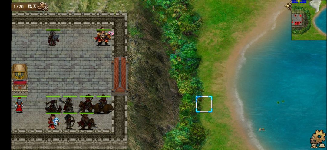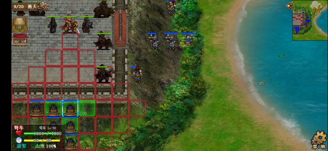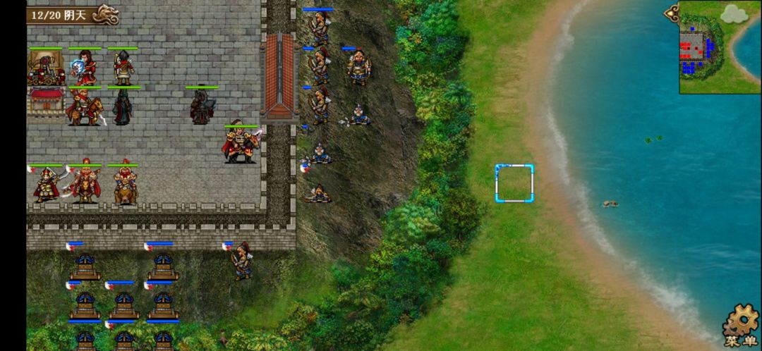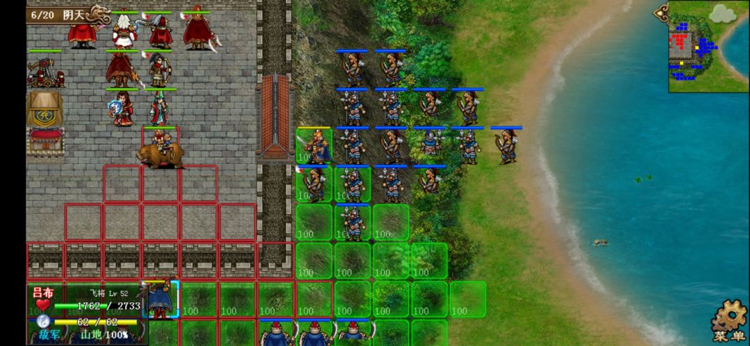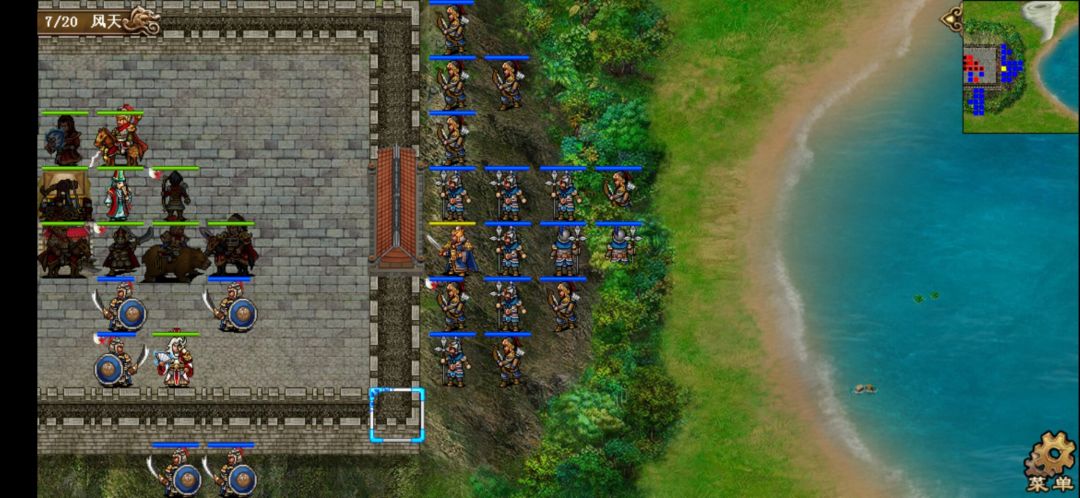 2、基本流程:第人分三批进攻我们守卫的城池,城池四周有城墙,除敌我双方的御林军外都不可穿越。开场陈宫带异士和弓骑兵进攻,之后敌方第三回合张辽带长枪兵和长弓手进攻,敌方第5回合吕布带御林军和弩车进攻。全灭敌人过关。
