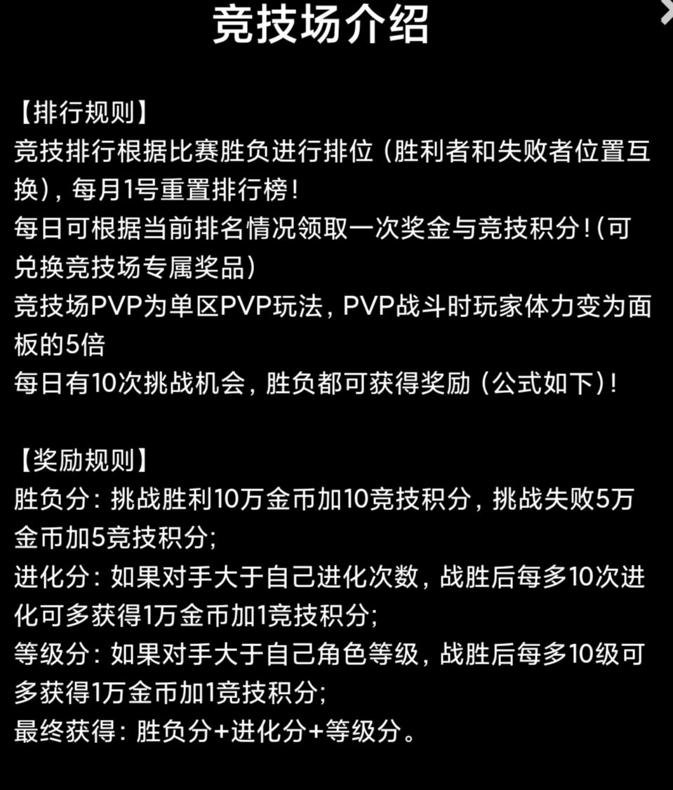 【PVP竞技·排行规则·积分奖励获取规则】