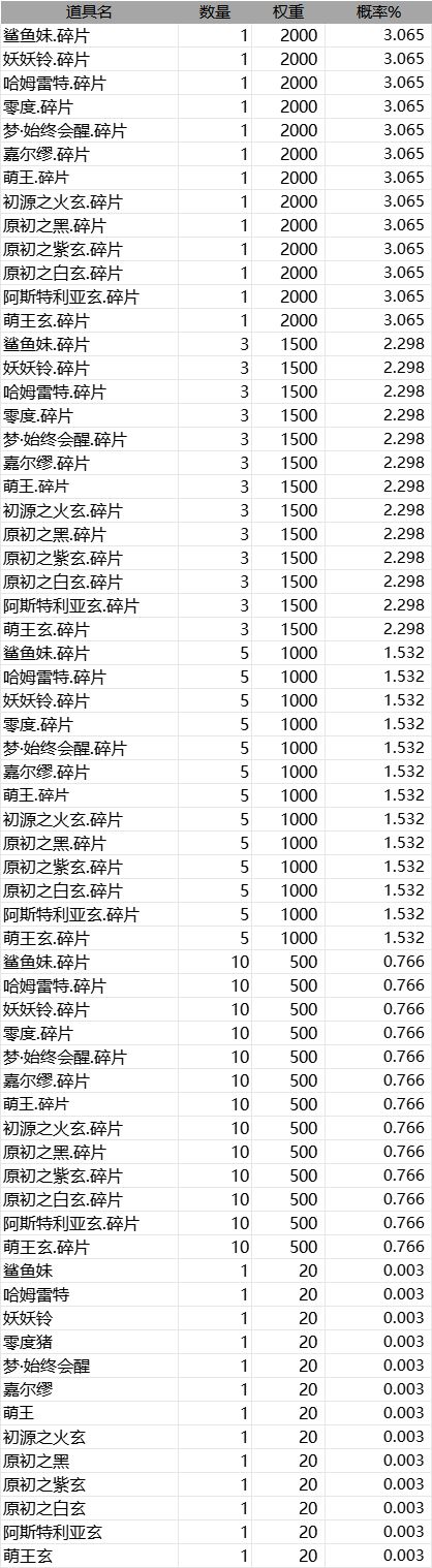 每周特惠扭蛋机概率公示