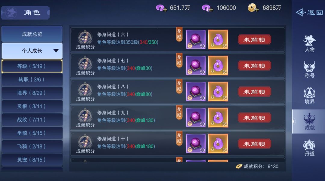 成就是记录仙尊成长目标情况,达成还可以获得海量的战力培养材料和仙玉。
