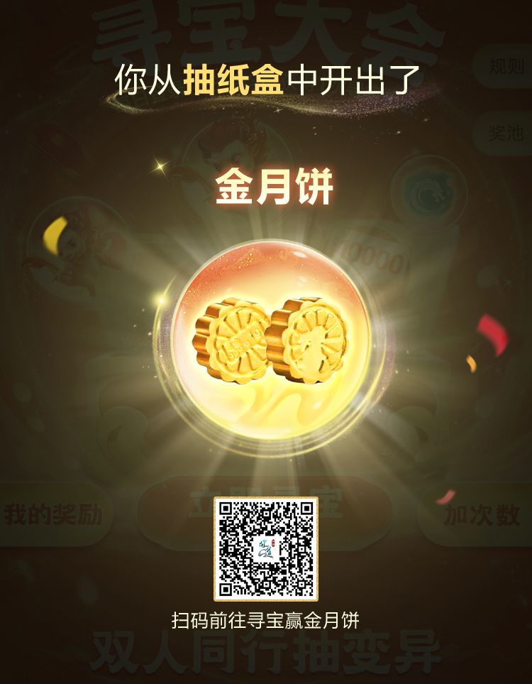 寻宝大会火热进行中,大家最近都有什么收获呀?价值18888元现金的头赏宝物,还在等待有缘人~扫码即可前往参与寻宝领头赏,预约十一大服还能解锁进阶奖池哦~