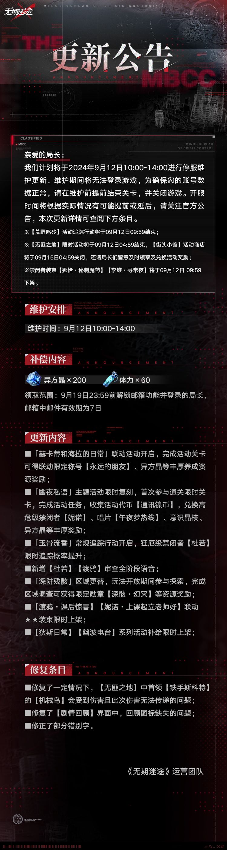 【公告】丨9月12日停服维护更新公告