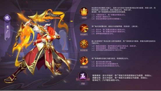 整体设计上,李广就是当之无愧的飞将。不过需要注意的是,除了面对刺客普遍无能为力的后排通用特性,以其为核心的阵容在遭遇控制体系时可能也会略显乏力。