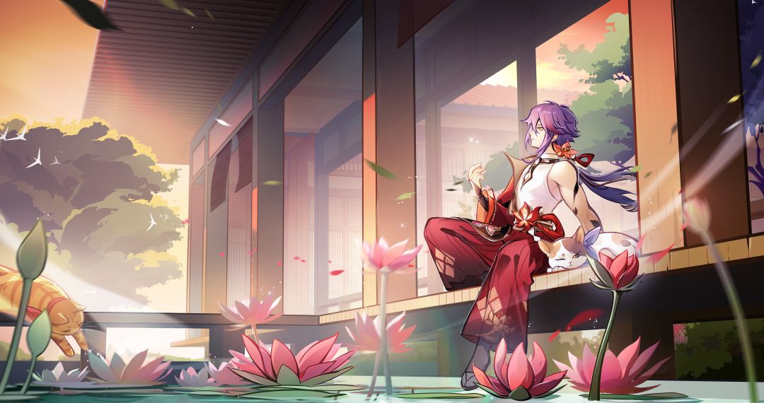 「落日余晖洒落水面,铺就一片朱红。这红或是夕阳所赐,或是莲花所映,亦或是紫原心中的渴望所化……」