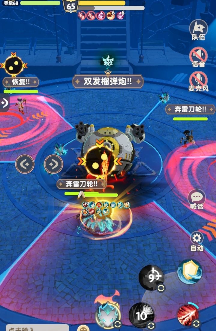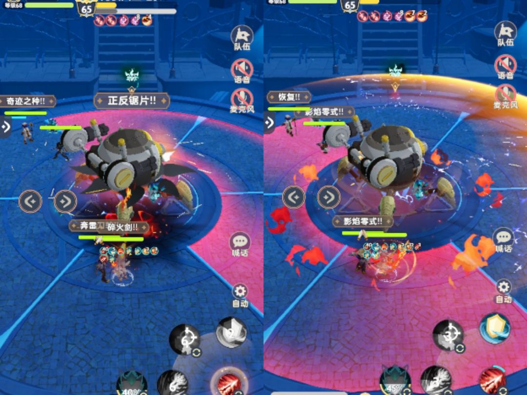 观察场上的红色锯片标记,如果标记出现在自身所在的板块则移动到其他板块,防止锯片移动一圈后停留在特效所在板块所造成的大量伤害。