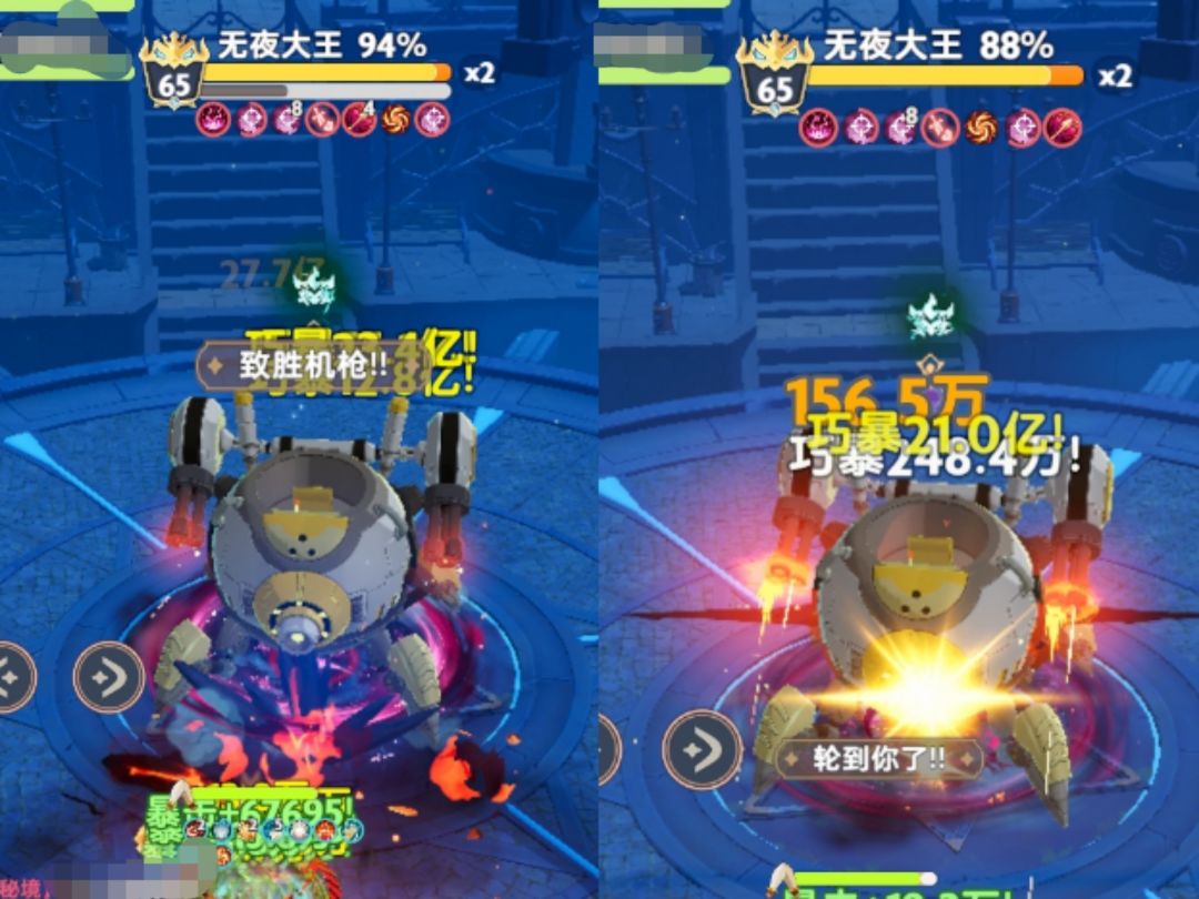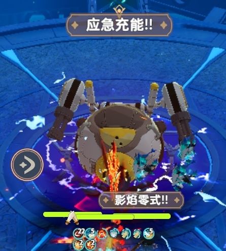 当第一条生命值被打空时,「Boss:无夜大王」释放「技能:应急充能」并进入第二阶段。