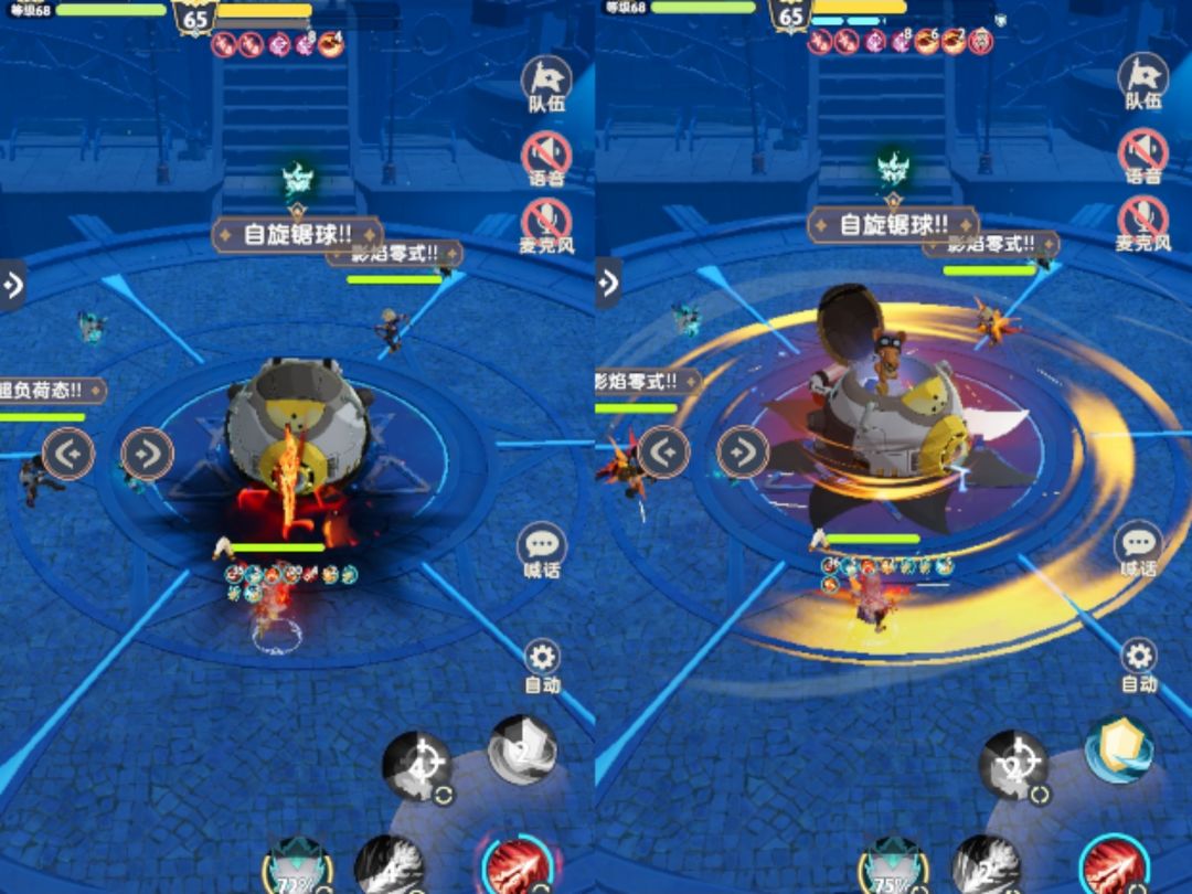 「Boss:无夜大王」蓄力后高速旋转锯片,对全体玩家造成中量伤害。