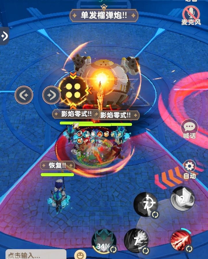 「Boss:无夜大王」释放【技能:单发榴弹炮】后随机瞄准锁定一名玩家,同时该玩家头上出现点数为4的分摊标记并开始蓄力,蓄力结束后,对被标记玩家所在板块上的全部玩家造成中量伤害,如果该板块上人数大于1则只会造成少量伤害。